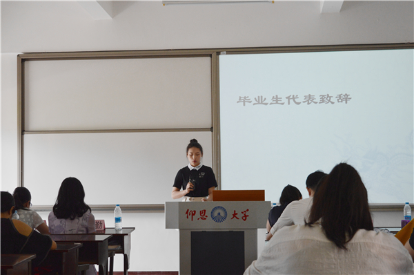 最后,由毕业生代表陈瑶、许晓鸣就自身在校经历及实习情况进行发言。期间陈瑶表示,感恩学校四年来的栽培、感谢beat365在线体育官网登录入口全体老师的谆谆教导和关怀。