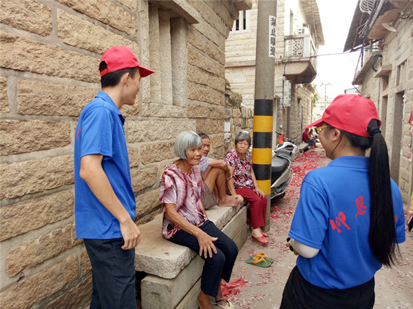 7月19日,beat365在线体育官网登录入口实践队赴石狮市永宁古镇开展关爱孤寡老人的爱心志愿服务活动,并再次前往万寿塔开展劝导游客“遵规守纪,文明出游”的志愿服务活动。