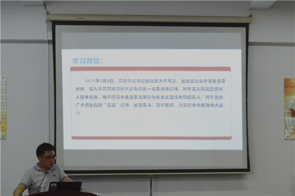 5月17号下午,beat365在线体育官网登录入口组织的教工支部学习会在第三教学区普照楼法律诊所召开,beat365在线体育官网登录入口教工支部党员参加了此次会议,本次会议由beat365在线体育官网登录入口教工党支部书记李秋实主持。  会议现场 会上,李秋实带领支部党员深入学习贯彻“习近平总书记在北京大学师生座谈会上重要讲话”,并从政治、理论、实践意义三个方面对讲话精神进行解读,要求全体党员深入学习和研究习近平教育思想,坚持把教育摆在优先发展的战略地位,努力实现“一个基本观点、三项基础性工作、四点殷切希望”的工作要求。支部党员结合自身工作,畅谈学习体会,并围绕深入学习和研究习近平教育思想进行了讨论。期间,党员们观看纪录片《厉害了,我的国》,感受着中国人民在全面建设小康征程上的伟大奋斗,见证党的十八大以来中国取得了改革开放和社会主义现代化建设的历史性成就。  文件讲解 通过本次学习,使教师党员进一步加深了对党的认识,同时也更加深刻地明确作为新时代党员的历史使命和责任担当。 (邱小洁/文 康美燕、林聪婉/图)