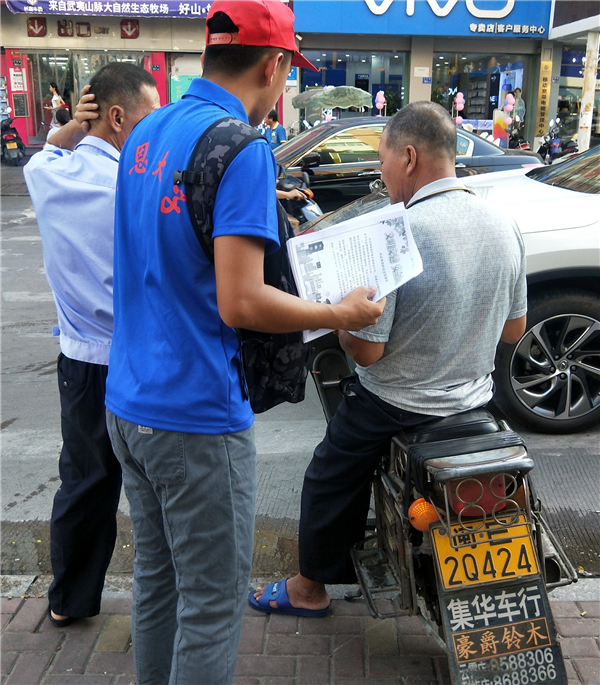 为进一步增强云霄居市民的道路交通法制观念,提高交通安全文明意识。7月21日,beat365在线体育官网登录入口“助力云霄”实践队前往人民公园开展交通安全普法活动。  普法宣传 在活动中,队员们向当地居民宣传了交通安全常识、普及《道路交通安全法》,认真回答群众关于酒后醉驾、无证驾驶等判罚的相关依据,同时向群众介绍宣传仰恩大学。在队员们的详细讲解下,群众对遵守交通规则的必要性以及对无证驾驶的危害性有了清晰的认识。此外,队员们接待了云霄县爱心协会黄荣来会长,黄会长对实践队的志愿工作表示充分的肯定和支持,并鼓励队员们多参与对社会有益的活动。 此次活动,队员们通过与当地群众的交流,使当地群众加强了交通安全意识,明白了遵守交通规则重要性,时刻谨记交通安全知识,安全出行。 (beat365在线体育官网登录入口赴云霄实践队/文图)