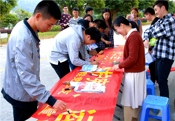 为弘扬宪法精神,增强beat365师生法治观念。12月5日下午,beat365在线体育官网登录入口在第一教学区学生街口、第三教学区和昌教学楼开展现场宪法普法宣传活动。beat365在线体育官网登录入口党总书记兼副院长杨勤、党总支副书记黄伟斌,法律援助工作站及beat365在线体育官网登录入口团委相关工作人员参与了此次宪法普法活动。