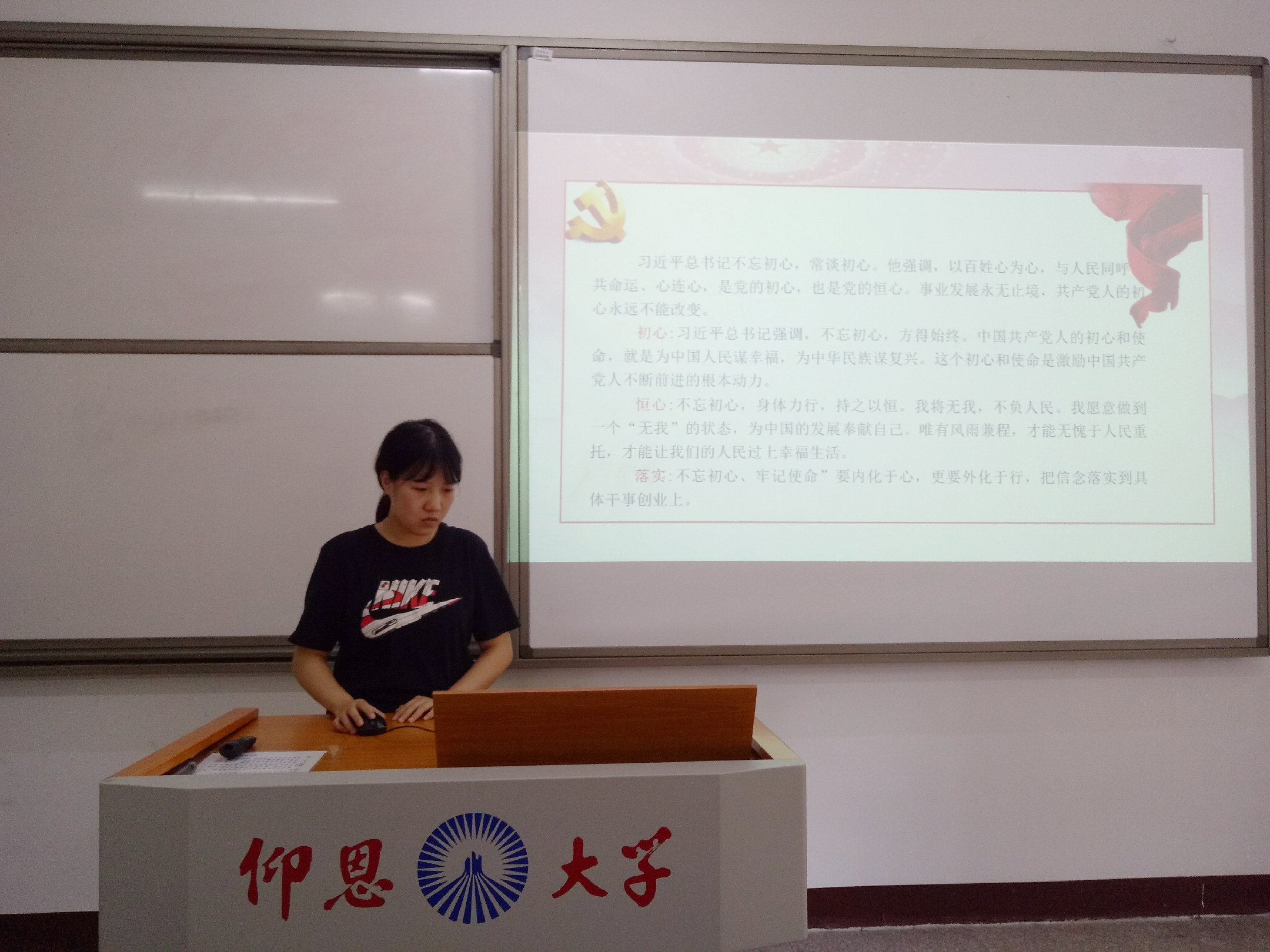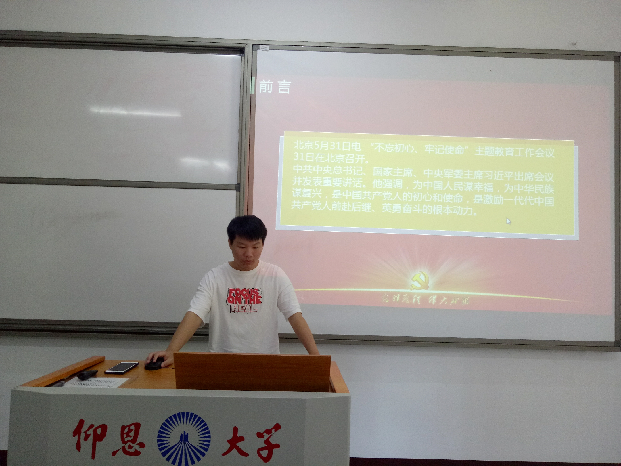 6月3日晚,beat365在线体育官网登录入口学生党支部于仰恩大学第三校区普照楼204室开展“不忘初心、牢记使命”主题教育学习会,会议由支部书记陈国伟主持,支部全体党员参加了本次活动。