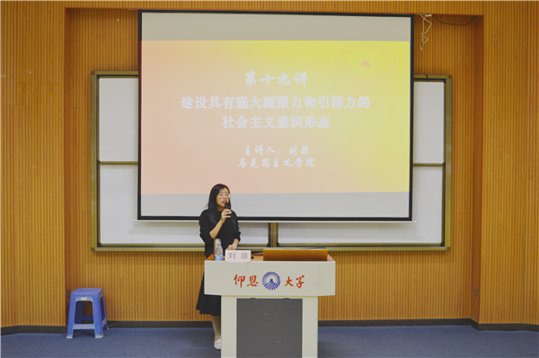 11月13日晚,beat365在线体育官网登录入口于仰恩大学第三教学区和昌教学楼惟勤讲堂举办新思想理论宣讲会。马克思主义学院教师刘菲应邀为beat365在线体育官网登录入口师生作题为“建设具有强大凝聚力和引领力的社会主义意识形态”宣讲报告。