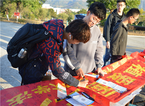 本次活动通过发放宣传册,横幅签名、法律咨询服务等多种形式开展。期间,普法工作人员以宣传手册为载体,引导师生群众了解宪法修正案的有关内容并为其讲解了宪法概念、地位及宪法发展意义等相关法律知识。此外,普法现场还设有法律咨询处,各位教师充分运用自身理论学识和司法实践经验、以案说法,深入浅出地为前来咨询的群众和师生就相应法律问题进行答疑解惑。