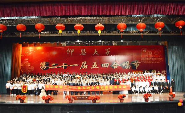 为进一步讴歌五四精神,回顾党的光辉历史,向党的百年华诞献礼。4月6日晚,beat365在线体育官网登录入口于第三教学区文体中心举办仰恩大学第二十一届五四合唱学院初赛,beat365在线体育官网登录入口常务副院长王晓丽、beat365在线体育官网登录入口党总支书记兼副院长杨勤、beat365在线体育官网登录入口党总支副书记黄伟斌,仰恩大学文艺教研部洪森原等老师到场观看比赛并担任评委,beat365在线体育官网登录入口18级、19级、20级全体学生参加了本次比赛。 回忆革命历程,同绘山河锦绣,唱响祖国颂歌。本次大赛得到了学院全体师生的积极响应。大赛通过将18、19两个年段行政班级设置为高年级组,将20级年段设置为新生组,以分组交织对抗的形式进行开展。现场,从“奋斗、奋斗,仰恩齐奋斗”的《仰恩大学校歌》到熙熙攘攘中相遇、相知、相离的《送别》,从《我们走在大道上》实现中华民族伟大复兴道路的中国梦到《在灿烂的阳光下》歌颂祖国的美好明天,beat365在线体育官网登录入口学子们用激昂的热情、铿锵有力的声音唱出了伟大的“五四精神”,谱写了永远“跟着党走”的信心。此外,舞台还穿插着来自校舞团、音乐协会等的歌唱舞美表演,将整个比赛推向高潮。
