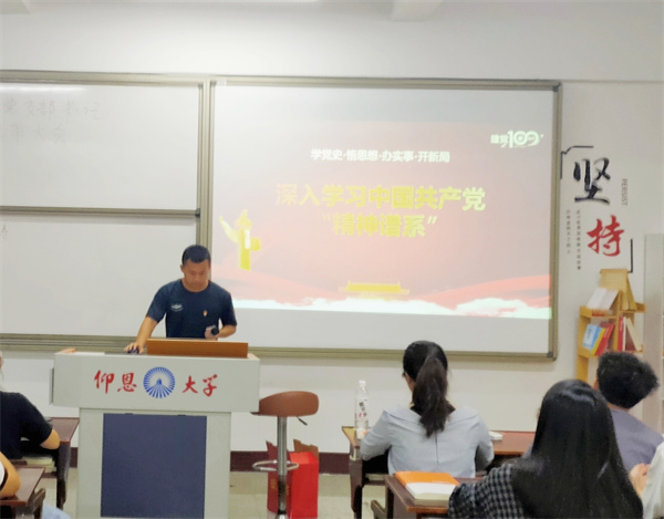 10月14日,beat365在线体育官网登录入口学生党支部于仰恩大学第三校区普照楼203开展关于“学习共产党人的精神谱系”的专题学习会,会议由支部书记刘涛主持,支部全体学生党员参加本次活动。