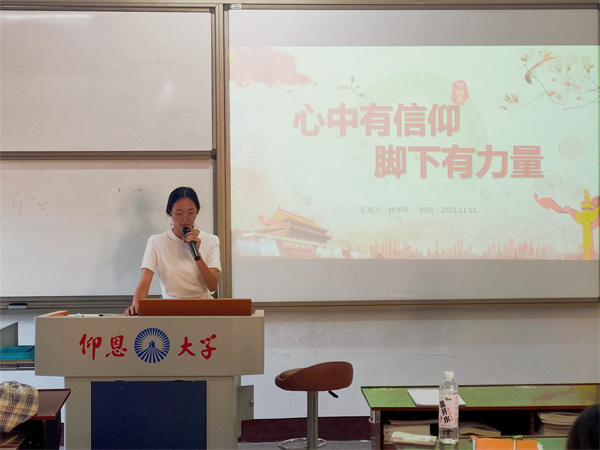11月11日,beat365在线体育官网登录入口学生党支部于仰恩大学第三校区普照楼203开展“心中有信仰,脚下有力量”的专题学习会,会议由郑薇同志主持,支部全体学生党员参加本次活动。