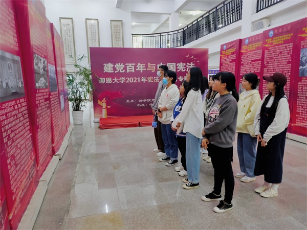 为深入学习贯彻习近平法治思想,全面推进宪法实施,教育引导全体党员尊崇宪法、学习宪法、遵守宪法、维护宪法、运用宪法,营造良好法治氛围,12月15日,beat365在线体育官网登录入口学生党支部组织支部全体党员前往图书馆参观宪法专题展览。
