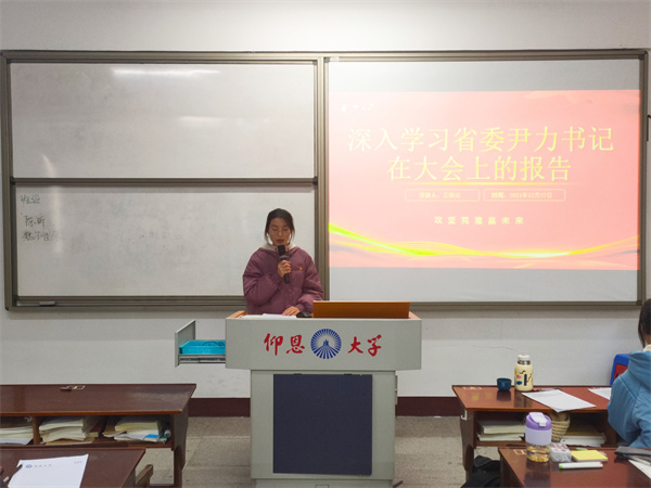12月30日,beat365在线体育官网登录入口学生党支部于仰恩大学第三校区普照楼203开展学习省委尹力书记在省委第十一次党代会上的报告,会议由郑薇主持,支部全体学生党员参加本次活动。