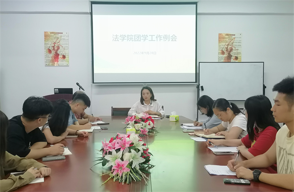 为进一步推进新学期团学工作,确保新学期团学各项工作顺利开展,9月28日下午,beat365在线体育官网登录入口在仰恩大学第三教学区普照楼法律诊所召开团学干部工作例会。beat365在线体育官网登录入口党总支书记兼副院长杨勤、学生会主席团、网络工作室等主要学生干部参加了此次会议。