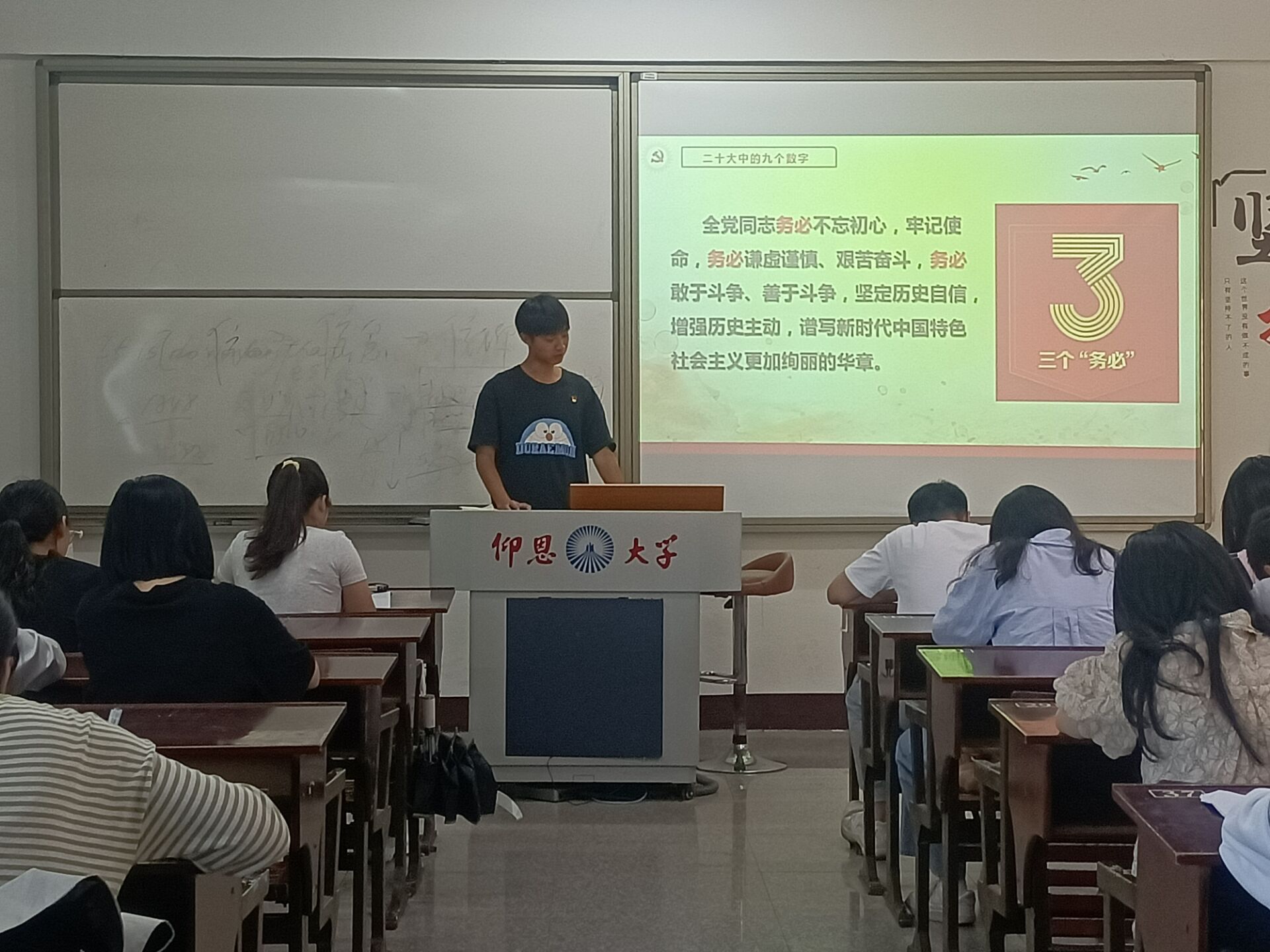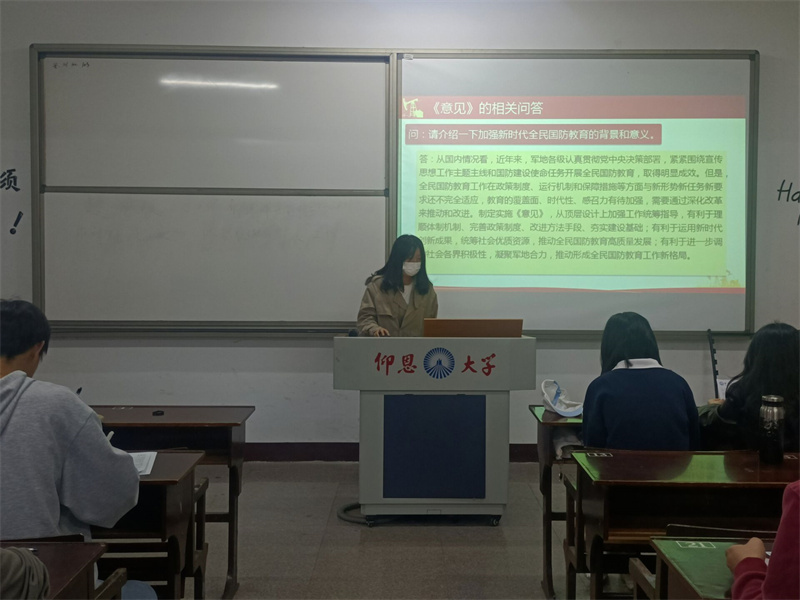 10月19日,beat365在线体育官网登录入口学生党支部于仰恩大学第三校区普照楼202开展以“学习中共中央、国务院、中央军委印发《关于加强和改进新时代全民国防教育工作的意见》”为主题的专题学习会,会议由郑薇主持,支部全体党员到场参加。