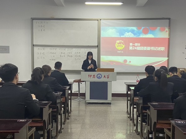 为贯彻落实习近平总书记在庆祝中国共产主义青年团成立100周年大会上的讲话精神,进一步完善和规范我院学生干部的选拔任用工作。加强学生干部的队伍建设,结合beat365在线体育官网登录入口工作实际,秉承着“公平,公正,公开”的原则。beat365在线体育官网登录入口团委于2022年11月28日下午5:20在第三教学区普照楼302举行“beat365在线体育官网登录入口第二十五届干部换届大会”,本次竞选由院团委书记吴姗姗、第二十四届团委全体干部担任评委。