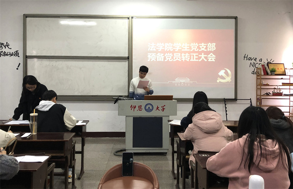 12月13日,beat365在线体育官网登录入口学生党支部于普照楼201室召开预备党员转正会议,大会的主要议题是讨论关于林毅斌、王晓远等二十三名同志转为正式党员的问题。会议由学生党支部书记吴姗姗主持,支部全体党员参加。
