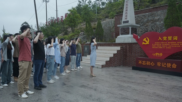 全体师生党员首先参观党史文化公园,了解洪四村“红色荣耀”故事,缅怀革命先烈英勇付出,体悟革命烈士的红色精神。期间,beat365在线体育官网登录入口党总支书记兼副院长杨勤带领全体师生党员在人民英雄纪念碑前重温入党誓词,坚定有力的宣誓声,表达全体党员同志时刻不忘初心,牢记使命的信念与决心。随后,全体师生党员参观洪四影剧院和党史展览馆,通过视频和现场讲解的方式直观地学习党的光荣文化历史,感受了红色革命文化的精神内涵。最后,全体师生党员了解了洪四村以“1+1+S”末梢治理党建同心圆为指导,以党建圆桌会和乡贤参事会为抓手的工作模式和所取得的工作成效,交流学习党建工作经验。