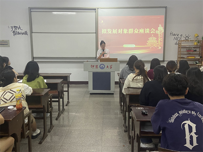 11月3日,beat365在线体育官网登录入口学生党支部于普照201教室召开拟发展对象群众座谈会,会议由杨丹主持,beat365在线体育官网登录入口各班团支书和群众代表参加此次活动。
