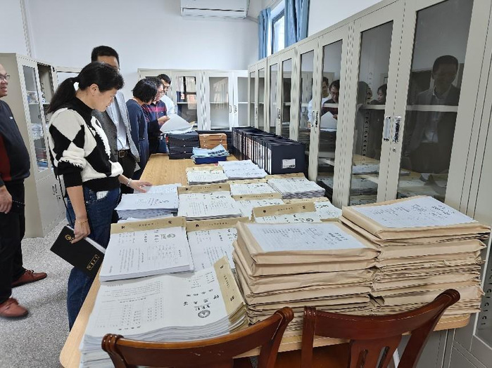 beat365在线体育官网登录入口党政领导班子对狄校长一行表示热烈欢迎,学院表示为了统筹推进审核评估工作,学院积极动员学院师生参与评估,组织教师整理修改近三年教学材料。王晓丽从上次审核评估调研后学院所进行的审核评估工作情况进行了汇报,包括对上次会议提出的问题进行整改、对照指标收集整理资料,同步推进自评报告撰写等各项工作。听完汇报后,调研人员来到学院办公室进行评估资料的查阅,检查。