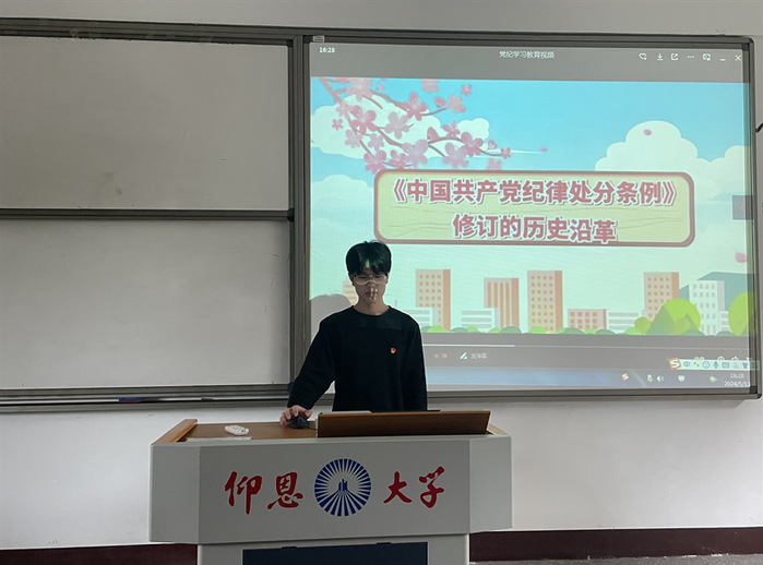 5月13日,beat365在线体育官网登录入口学生党支部于普照楼203组织观看党风党纪警示教育片。本次党日活动旨在引导支部学生党员以案为鉴、警钟长鸣,严守党的纪律,自觉做到清正廉洁。本次党日活动由吴姗姗主持,支部全体学生党员参加。