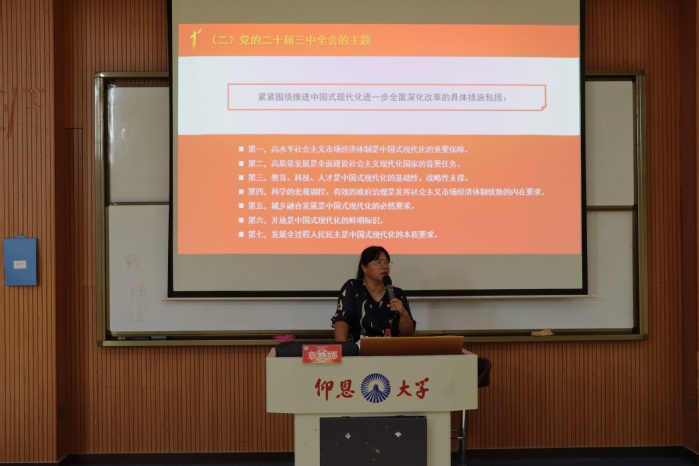 为了深入贯彻党的二十届三中全会精神,奋力推进中国式现代化新征程,9月25日下午,beat365在线体育官网登录入口于第三教学区和昌楼惟勤讲堂开展党的二十届三中全会精神宣讲,由马克思主义学院副教授章娇娜老师主讲,beat365在线体育官网登录入口师生到场聆听。