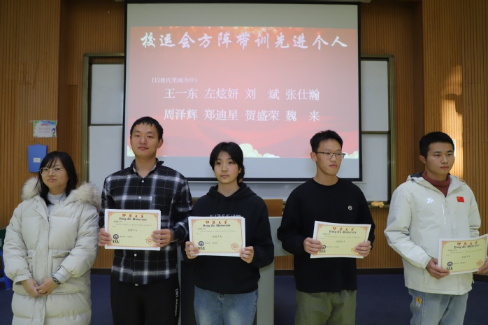 会议伊始,全体师生通过视频一同回顾第三十三届运动会的精彩瞬间。视频里的点点滴滴,运动员们矫健的身影似在眼前重现,热血依旧澎湃。随后,由张传奇宣读表彰决定,上台对此次活动中学生与团体的表现做出点评。接下来颁奖环节,由各位老师为获奖人员进行颁奖,并进行合影留念。