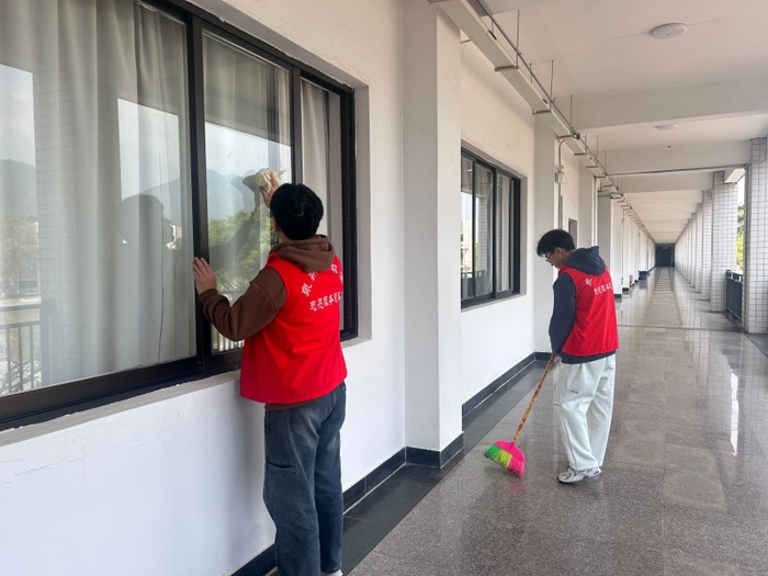 3月19日,beat365在线体育官网登录入口学生党支部于普照楼和仰恩楼开展“学习时代楷模,汲取榜样力量”志愿服务党日活动,支部全体学生党员参加。