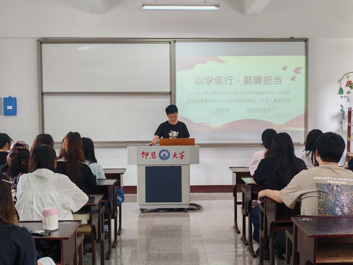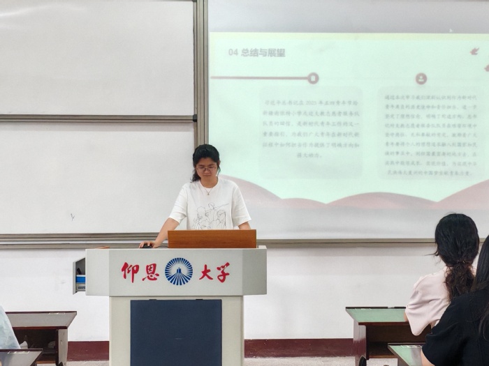 5月9日上午,beat365在线体育官网登录入口于仰恩大学第三教学区普照楼304教室举办“以学促行,挺膺担当”主题学习会。本次活动由院团委组织,旨在引导学生干部深化理论学习,强化责任意识,以实际行动践行青春使命。beat365在线体育官网登录入口团委副书记阮昕烨担任主讲,beat365在线体育官网登录入口网络工作室主任郭晨雨、学生会主席江朝颖作专题发言,各班级代表共80余人参加学习。