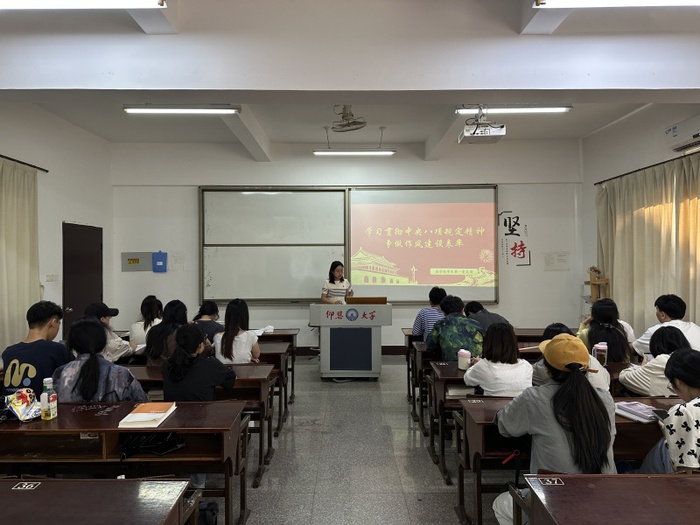为了引导支部党员深入学习中央八项规定精神,强化作风建设,切实发挥党员先锋模范作用,5月12日,beat365在线体育官网登录入口学生第一党支部于普照教学楼203教室举行“学习贯彻中央八项规定精神,争做作风建设表率”党课活动。本次会议由第一党支部书记吴姗姗主持,支部全体学生党员参加。