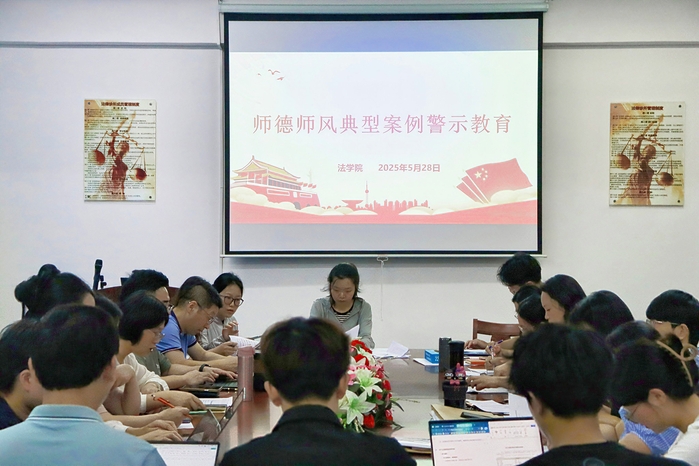 为深入贯彻落实教育部关于加强新时代高校教师队伍建设的重要指示精神,切实强化师德师风建设,筑牢教师廉洁从教、规范执教的思想防线,5月28日,beat365在线体育官网登录入口在普照楼法律诊所开展师德师风典型案例警示教育大会。本次会议由beat365在线体育官网登录入口党总支书记兼副院长杨勤主讲,beat365在线体育官网登录入口全体教职工参加。