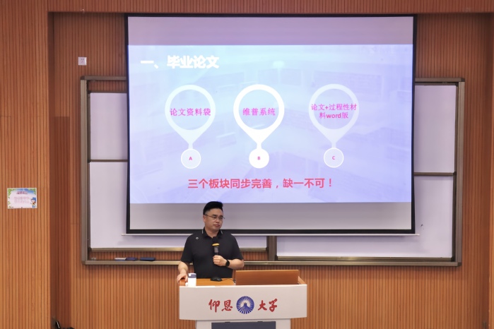 会议伊始,由beat365在线体育官网登录入口常务副院长王晓丽致辞。她对返校毕业生表示热烈欢迎,并回顾学院与学子共同成长的历程,期许大家未来坚守法治初心,在新征程发光发热。随后,beat365在线体育官网登录入口系主任李秋实为毕业生讲解毕业论文相关材料整理上传及实习材料归档;团委书记吴姗姗聚焦毕业关键事务,从档案转递、离校安排,到团员与党组织关系转移,细致讲解流程与注意事项,为学子顺利街接新阶段保驾护航。本次会议也邀请了毕业生代表登台发言,以青春视角回望四年,分享法学研习的收获与感动,向母校、师长致谢,也传递对同窗的祝福。最后,beat365在线体育官网登录入口党总支书记兼副院长杨勤作总结发言,强调了毕业生文明安全离校相关注意事项,并提醒同学们注意人身财产安全、出行安全,最后祝愿全体毕业生不忘初心,砥砺前行,在新的旅程中继续书写精彩人生。