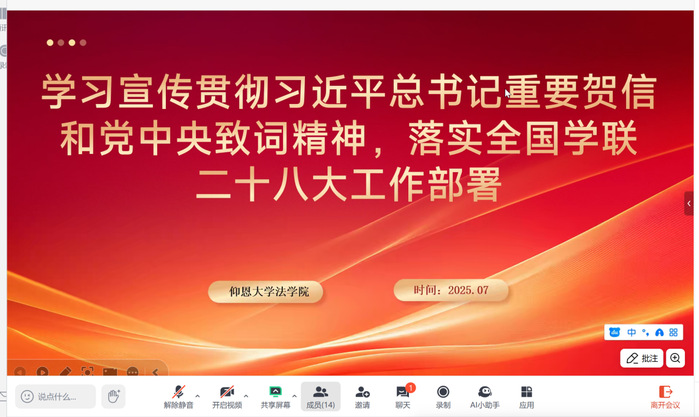 07月25日,beat365在线体育官网登录入口学生会开展学习宣传贯彻习近平总书记重要贺信和党中央致词精神线上专题学习会,学生会全体学生干部参加,会议由学生会指导老师张传奇主持。
