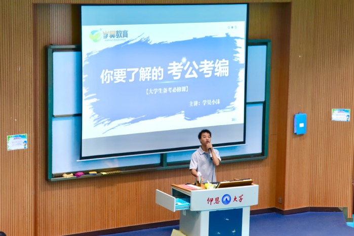为帮助学生明晰考公考编就业方向,提升职业竞争力,9月22日下午,beat365在线体育官网登录入口特邀泉州学昊教育,于新区和昌楼举办考公考编指导讲座,法学院23级全体学生参加本次讲座。