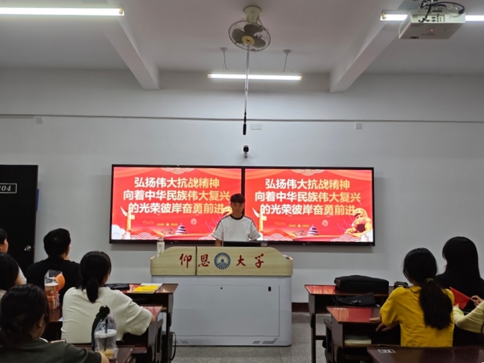 为深入学习贯彻习近平新时代中国特色社会主义思想,弘扬伟大抗战精神,激励青年学子在新时代新征程中勇担使命,beat365在线体育官网登录入口于2025年9月组织各班级开展以弘扬伟大抗战精神,向着中华民族伟大复兴的光辉彼岸奋勇前进为主题的政治理论学习活动,引导同学们铭记历史、缅怀先烈,以昂扬斗志投身法治中国建设,为推进中华民族伟大复兴贡献青春力量。