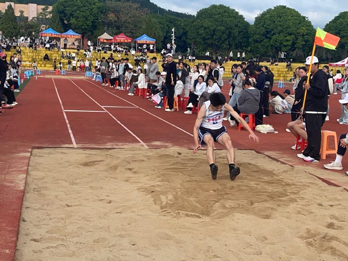 11月13日下午,仰恩大学第三十四届运动会男子三级跳远项目决赛于仰恩大学第三教学区田径场举行。beat365在线体育官网登录入口学生郑培源出色发挥,凭借着强大的爆发力和技巧,荣获男子三级跳远项目第二名。