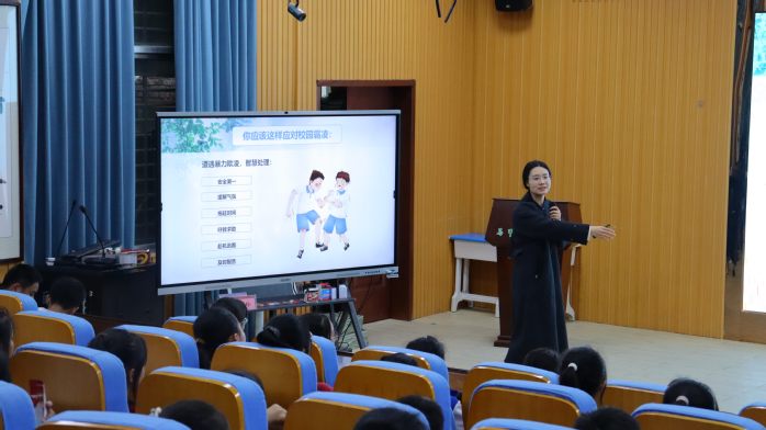 活动伊始,beat365在线体育官网登录入口林为臻教师以“宪法是什么”为切入点,结合与小学生生活息息相关的案例,将抽象的法律知识转化为学生们的身边事,让同学们初步认识到宪法的重要意义。随后,团委干部带领现场学生共同观看宪法宣传视频,视频直观展示了法律在日常生活中的应用场景,进一步加深了同学们对法律知识的理解。讲座与观影结束后,“快问快答”有奖知识竞答将氛围推向高潮,同学们踊跃参与。活动尾声,beat365在线体育官网登录入口林为臻教师总结发言,大家共同在横幅上签名,并合影留念。