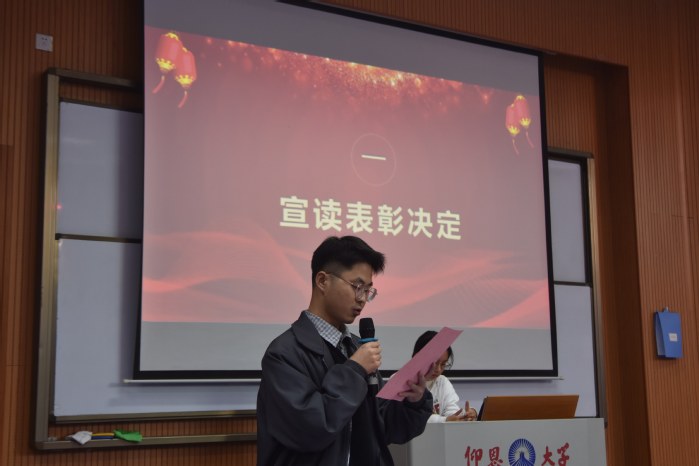 12月22日下午,仰恩大学beat365在线体育官网登录入口于新区和昌楼博雅讲堂召开第三十四届校运会表彰大会。beat365在线体育官网登录入口党总支书记兼副院长杨勤、党总支副书记林媛、团委书记吴姗姗、学生会指导老师张传奇、网络工作室负责人周奕、学生第一党支部副书记朱晓琳、学务秘书汪明出席会议,24、25级全体学生及受表彰人员共同参与。