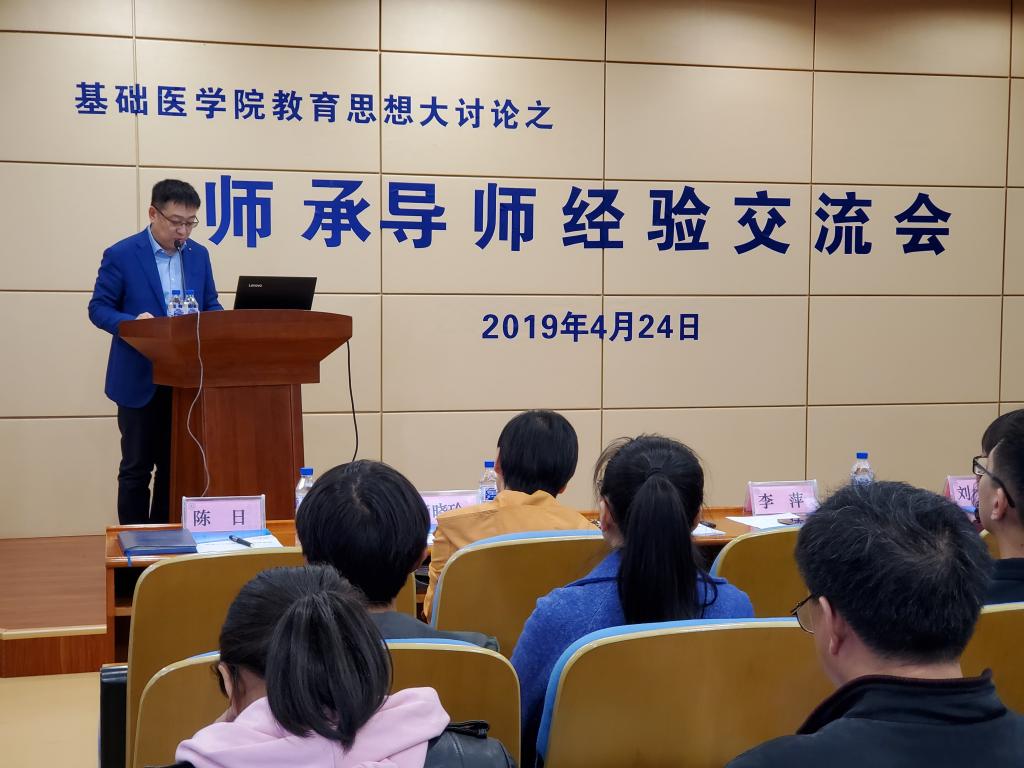 4月24日,beat365平台唯一官网在菊韵报告厅召开教育思想大讨论系列活动之师承导师经验交流会。校长宋柏林,教务处副处长刘杰,beat365平台唯一官网领导班子,各教研室主任,全院教师及部分师承学生参加会议,党委书记陈日主持会议。