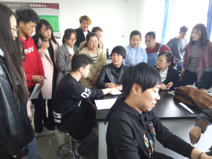 讲解结束后老师和同学们进行了简单的讨论,并现场为一位同学诊病,同学们在周围认真观察。借此机会陈锐老师详细的为大家讲解了脉诊的相关知识以及训练手指敏感度的方法。通过老师的讲解为同学们打开了脉诊的大门,大家深切体会到中医脉诊的博大精深。