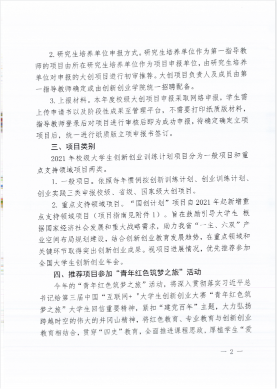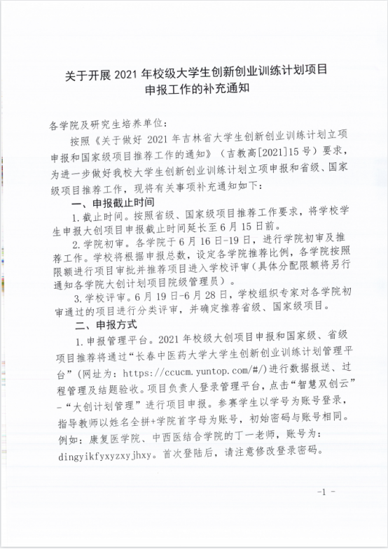 关于开展2021年校级大学生创新创业训练计划项目申报工作的补充说明