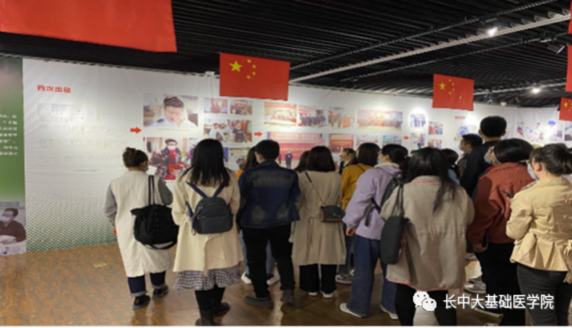 参观期间,党员们在讲解员的带领下,依次走过了“党旗飘扬”“长中力量”“使命担当”“中医智慧”“合格答卷”“战疫英雄”6个主题展区,每一位党员都认真观展,用心聆听。beat365平台唯一官网党委积极响应党中央的号召,组织各方力量开展防控,beat365平台唯一官网师生积极参与,将“人民至上、生命至上”的理念贯穿始终,一次次逆风而行,闯入疫情的“暴风眼”。那摁满红手印的请战书,为更好的与疫情搏斗而剪下的长发,让观展的党员们长久注目。