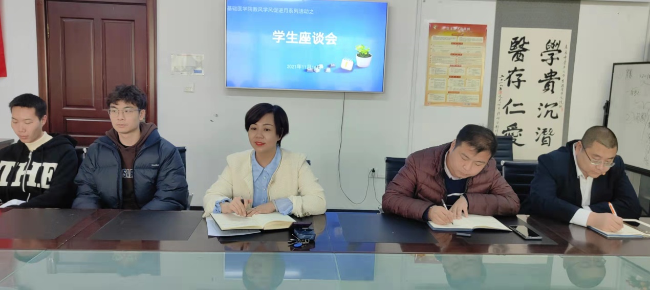 与会人员围绕期中教学检查过程中《中医各家学说》课程的课堂教学秩序问题进行探讨,与会学生就专业年级的心理、学习状况以及上课体会和感想进行发言,并结合实际对教师授课过程中的提出了中肯的想法,座谈会进一步促进教师了解学生学情,使任课教师结合学情进行调整教学设计和内容。